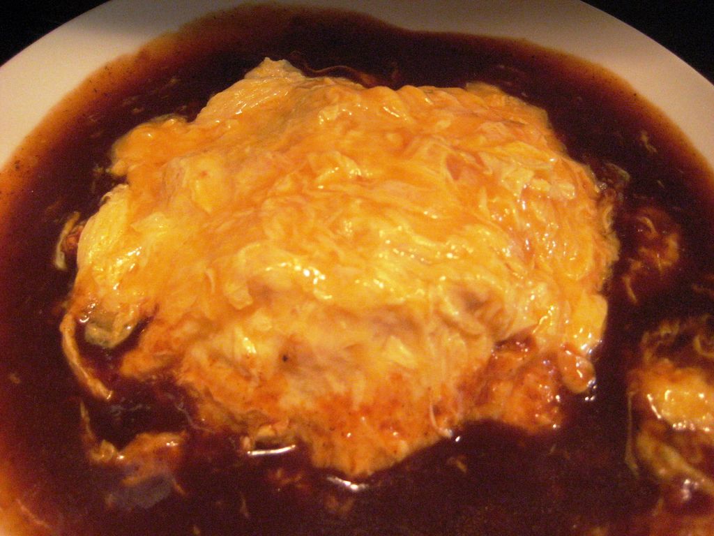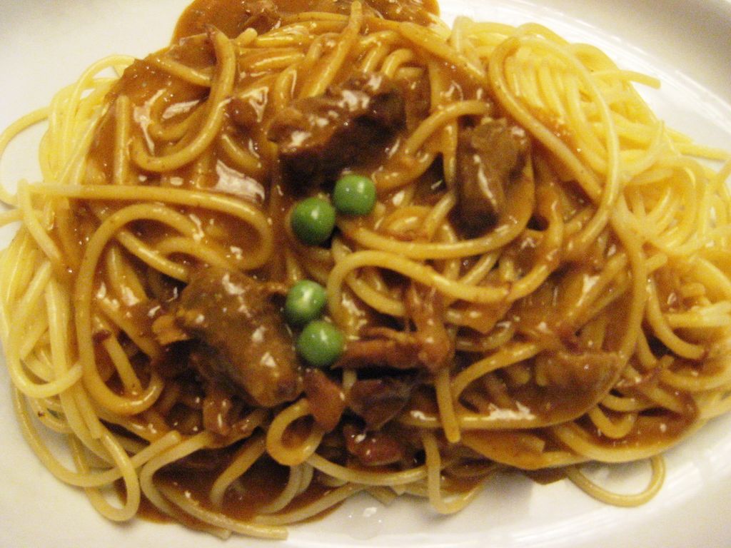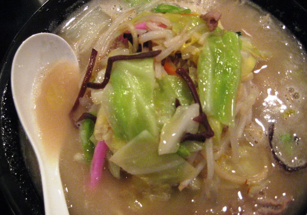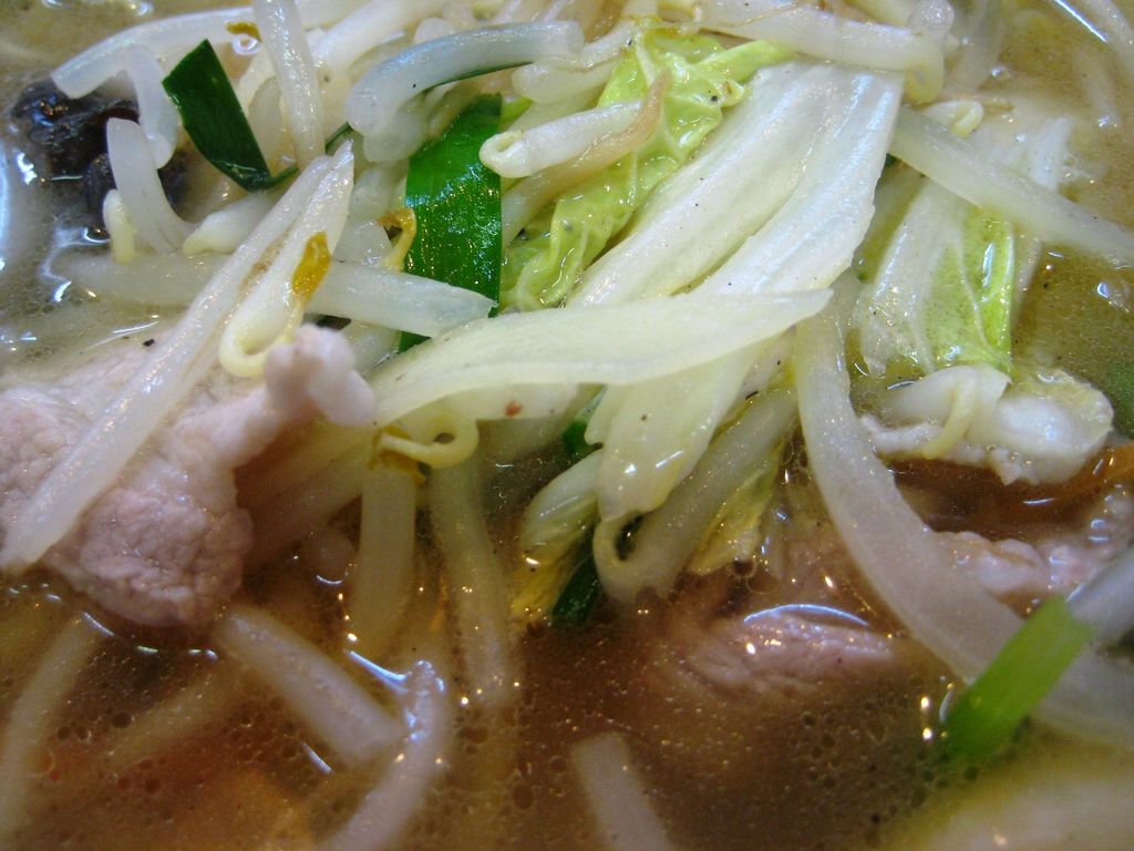 トッピングはキャベツ、ニンジン、タマネギ、モヤシ、豚肉、イカです。