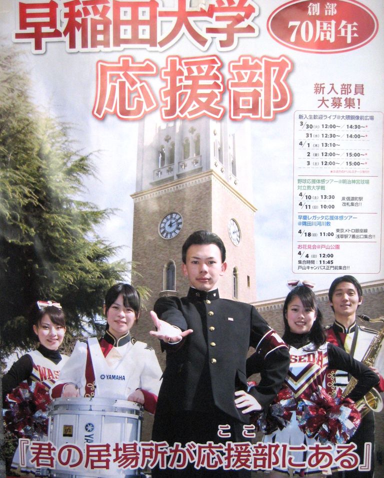 早稲田大学応援部の新人勧誘ポスターです。「君の居場所が応援部にある」というなんとも応援部らしいベタなキャッチです。