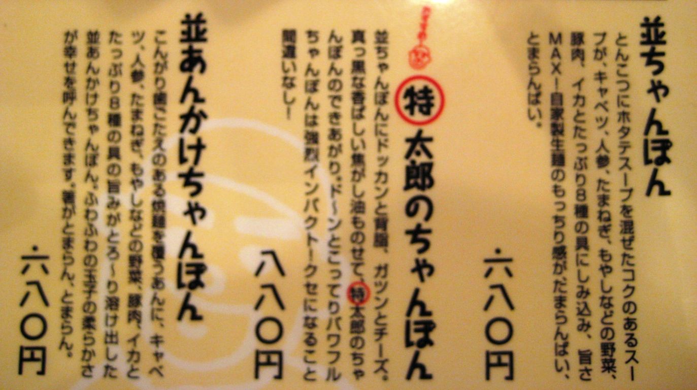 ということで暖をもとめて入ったお店は元祖焼麺「ちゃんぽん太郎