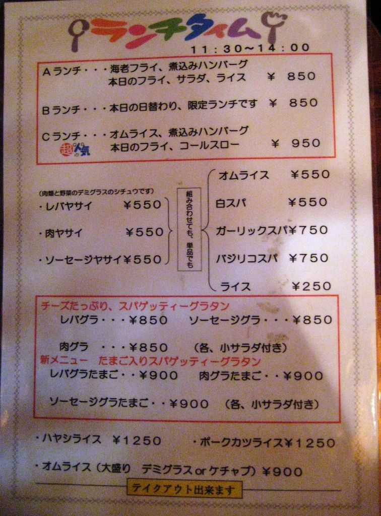 メニューです。