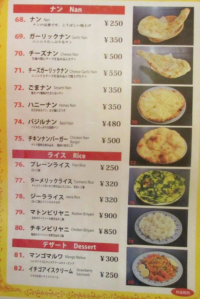 メニューです。