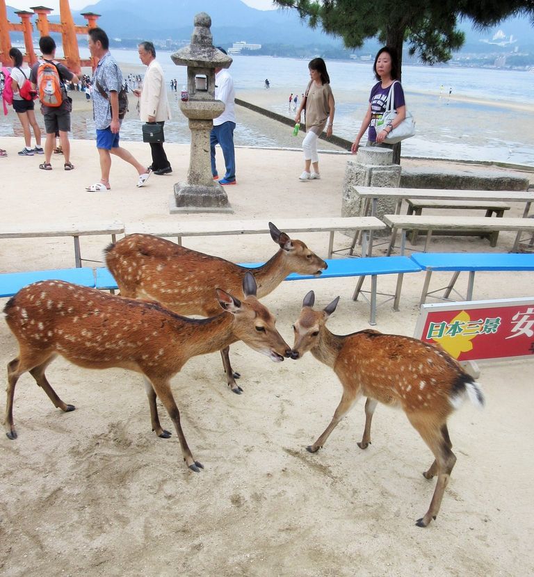 観光客が健康に良くないエサを与えたり、ゴミを飲み込んだりするため、人からの餌やりを禁止しされており、今では山へ還すような方針がとられています。