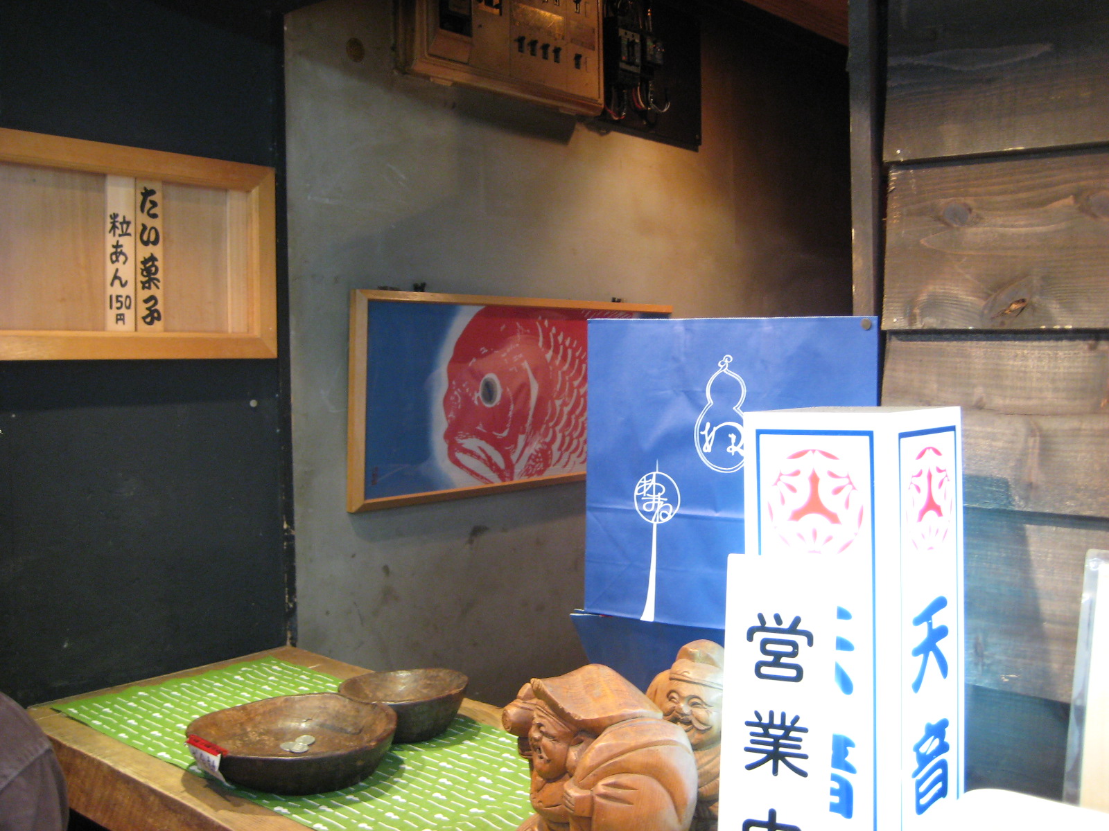 昔はすぐに買えたのに・・・それとたい菓子を焼くところも見えたのに今は隠して見られません。それとなにやら作りおきの鯛焼が敷居の隙間から見受けられます。