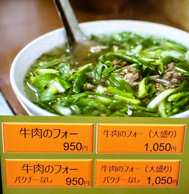 フォーの上にパクチーが、たんまり。