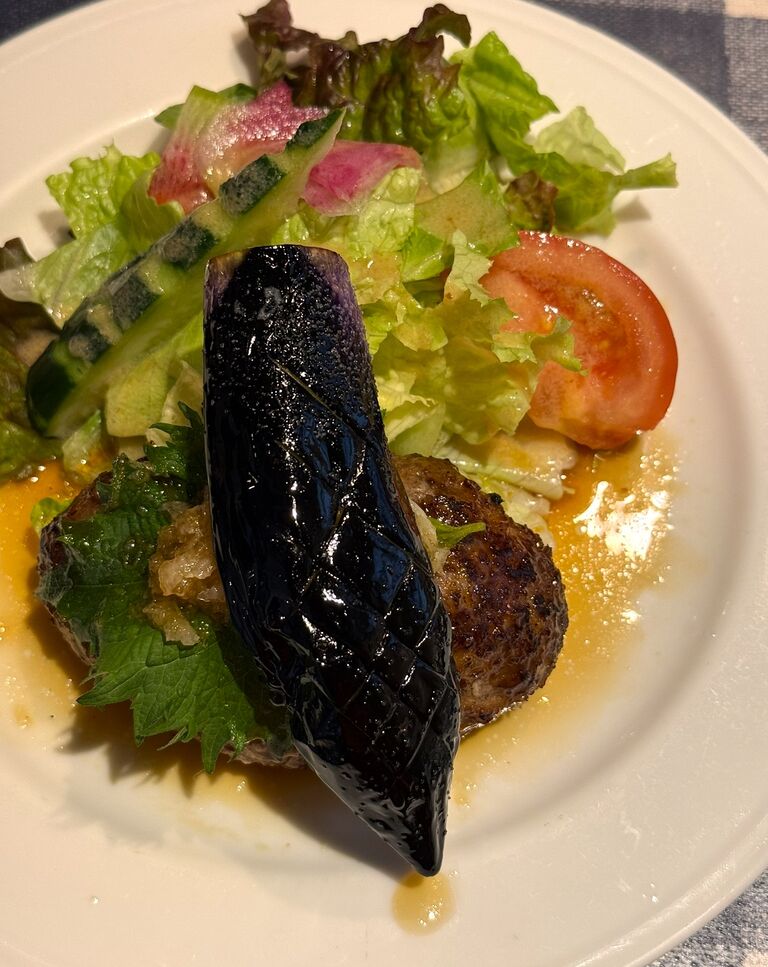 ハンバーグは定番の美味しさですが、茄子の美味しさが際立っています。