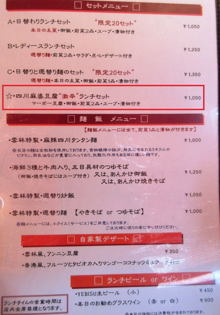 今日のオーダー新メニュー「四川麻婆豆腐“激辛”ランチセット」1,050円です。
